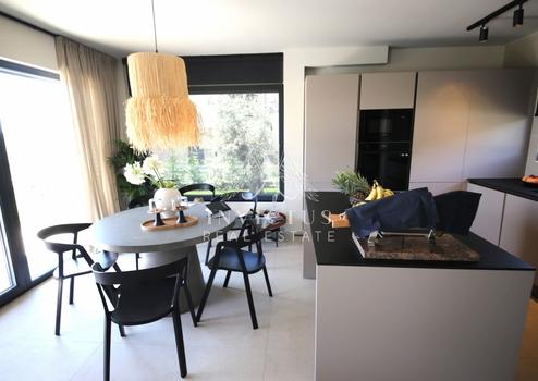 Das Haus verfügt über Fußbodenheizung, eine Wärmepumpe und eine Klimaanlage in jedem Raum.