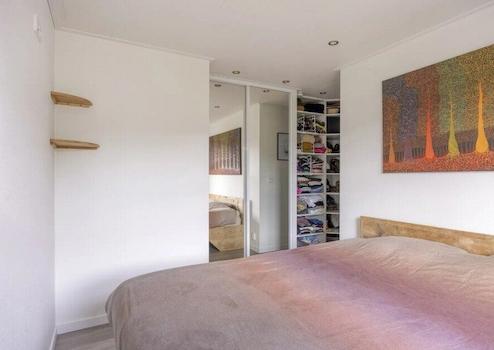 Das Hauptschlafzimmer bietet Platz für ein Queensize-Doppelbett und verfügt über besonders viel Stauraum.
