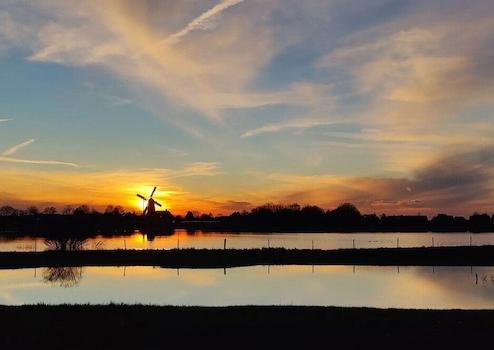 Wach auf mit Blick auf das Wasser und eine Windmühle (3370)