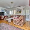 - Wohnzimmer (22.75 m2) mit Zugang zur überdachten Terrasse (19.76 m2), Wintergarten (19.59 m2) und Garten (174 m2)