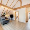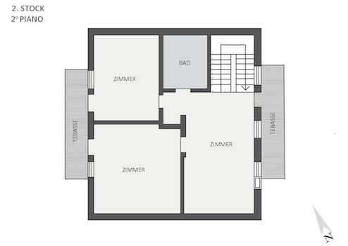 RAUMAUFTEILUNG OBERGESCHOSS - Nettofläche 83,54m²: Eingangsbereich, repräsentativer Wohn-Bereich mit antikem Kachelofen und Zugang zur Südterrasse mit Privatgarten, großzügige Wohnküche, 1 Zimmer, 1 Arbeitszimmer, 2 x großes Bad mit Fenstern, Flur, 2 Balkone in Westausrichtung