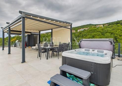 Ein besonderes Highlight ist die großzügige Dachterrasse mit einer Außenküche und Pergola sowie einem offenen Bereich zum Genießen – mit herrlichem Panoramablick auf das Meer und die umliegende Natur.