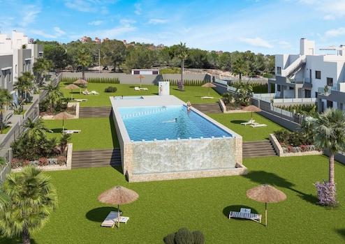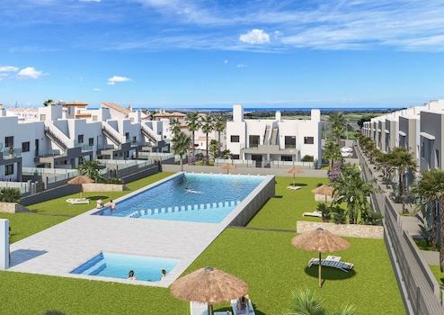 Neubau-Bungalows in San Miguel de Salinas – Natur, Golf und Komfort~~Entdecken Sie diese neue Wohnanlage in San Miguel de Salinas, gelegen in der begehrten Gegend „La Cañada“, umgeben von einem geschützten Pinienwald zwischen den renommierten Golfplätzen Campoamor und Las Colinas. Nur 7 km von der Mittelmeerküste entfernt, bietet diese Wohnanlage die perfekte Mischung aus Ruhe, Natur und guter Anbindung an alle Annehmlichkeiten.~~Geräumige und moderne Häuser~Die Wohnanlage bietet zwei Immobilientypen für unterschiedliche Lebensstile:~Bungalows im Erdgeschoss: 2 Schlafzimmer, 2 Badezimmer, zwei große private Gärten und oberirdischer Parkplatz.~Bungalows im Obergeschoss: 2 Schlafzimmer, 2 Badezimmer, großzügige Sonnenterrasse mit Meerblick und oberirdischer Parkplatz.~Jedes Haus verfügt über großzügige Abmessungen und kann zu einem Grundriss mit 3 Schlafzimmern umgebaut werden (optional gegen Aufpreis), inklusive Küchengeräten.~~Hochwertige Ausstattung~Alle Immobilien sind auf Komfort und Funktionalität ausgelegt und verfügen über:~Voll ausgestattete Badezimmer mit Möbeln, Spiegeln und Duschwänden~Aerothermisches Warmwassersystem~Eingebaute LED-Deckenleuchten~~Exklusive Gemeinschaftsbereiche~Die Wohnanlage verfügt über 1.700 m2 landschaftlich gestaltete Grünflächen mit Palmen und mediterranen Pflanzen. Die Bewohner können einen großen Swimmingpool mit Whirlpool, ein Kinderbecken und Liegewiesen genießen, was die Anlage zum idealen Ort macht, um das ganze Jahr über das Klima der Costa Blanca zu genießen.~~Privilegierte Lage in San Miguel de Salinas~Diese ruhige Wohnanlage liegt weniger als 3 km vom charmanten Ort San Miguel de Salinas entfernt, wo alle Dienstleistungen des täglichen Bedarfs zur Verfügung stehen. Darüber hinaus sind die schönen Sandstrände von Orihuela Costa und Torrevieja nur 7 km entfernt und bieten unzählige Freizeit-, Einkaufs- und Gastronomiemöglichkeiten.~~In der Nähe renommierter Golfplätze~Für Golfbegeisterte ist die Lage unschlagbar. In einem Umkreis von 4 km finden Sie drei der renommiertesten Golfplätze der Costa Blanca:~Villamartín Golf – 3,5 km~Las Colinas Golf & Country Club – 4 km~Campoamor Golf – 4 km~~Hervorragende Anbindung~Zu den wichtigsten Sehenswürdigkeiten in der Nähe gehören:~San Miguel de Salinas – 3 km~Einkaufszentrum La Zenia Boulevard – 10 km~Flughafen Alicante – 55 km~Flughafen Murcia (Corvera) – 50 km~~Sichern Sie sich Ihr neues Zuhause in San Miguel de Salinas~Ob Sie einen dauerhaften Wohnsitz, einen Rückzugsort für den Urlaub oder eine Investitionsmöglichkeit suchen, diese neu gebauten Bungalows bieten ein hervorragendes Preis-Leistungs-Verhältnis in einer der begehrtesten Gegenden der Costa Blanca. Kontaktieren Sie uns noch heute für weitere Informationen und um einen Besichtigungstermin zu vereinbaren.
