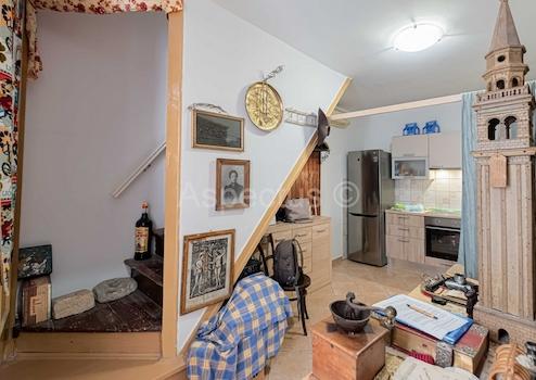 Das kleinere Haus mit einer Fläche von ca. 15 m² pro Etage verteilt sich auf 3 Etagen (ca. 45 m²). Im Erdgeschoss wird es derzeit als Werkstatt genutzt, während der erste und zweite Stock aus offenen Räumen bestehen, die noch adaptiert werden müssen. Dank der attraktiven Lage an einer belebten Strasse, die das ganze Jahr über von Touristen und Besuchern frequentiert wird, eignet es sich ideal für ein Geschäft, ein Souvenirgeschäft, eine Galerie oder eine Handwerkswerkstatt.