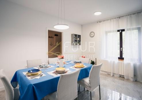 Zu vermieten: möbliertes Haus in Škrljevo, ideal für eine Familie oder mehrere Personen. Es bietet 151 m² Wohnfläche, umgeben von einem eingezäunten Garten von ca. 500 m² sowie einer überdachten Terrasse – perfekt für gemeinsame Zeit und Entspannung.