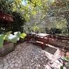 Der Garten bietet eine kleine Veranda zum geselligen Beisammensein, einen Steingrill und ein großes Haus.