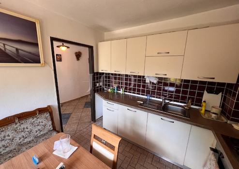 Die Wohnung im Obergeschoss besteht aus zwei Schlafzimmern, einem Wohnzimmer, einer Küche mit Esszimmer, einem Badezimmer, einem Flur und einem Balkon mit Zugang vom Wohnzimmer. Vom Balkon aus bietet sich ein herrlicher Blick auf das Meer, die Insel Krk, Velebit und Učka. Die Wohnung ist geschmackvoll eingerichtet, möbliert und in gutem Zustand.