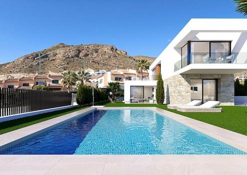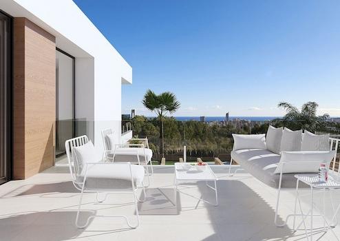 Diese atemberaubenden brandneuen Villen liegen in der exklusiven Urbanisation Sierra Cortina, nur 5 Minuten von Benidorm entfernt.