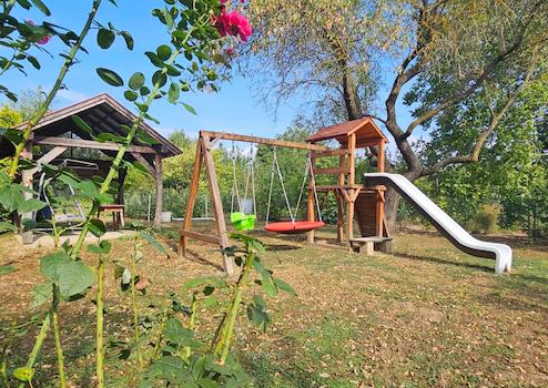 Es verfügt über einen Garten mit mehreren Obstbäumen (Feigen, Äpfel, Sauerkirschen usw.) und Nutzpflanzen auf einer Fläche von 879 qm. Das Grundstück ist eingezäunt und ein neues Tor wurde errichtet.