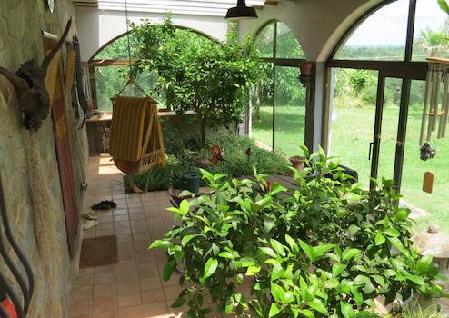 Das Haupthaus mit ca. 200m² Wohnfläche wurde 2000 fertiggestellt. Die Gebäudeisolierung wurde in 5 cm Natur-Kork mit Luftkammer in allen Außenwänden ausgeführt. Die Holzfenster bestehen aus Thermopane-Isolier-verglasung.