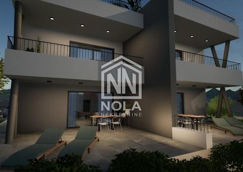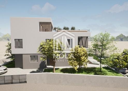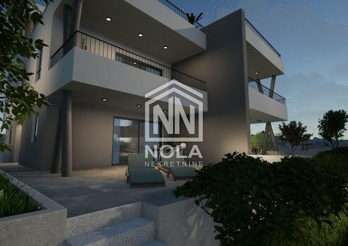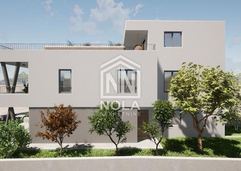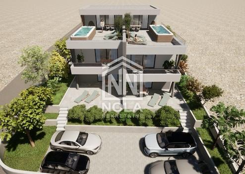 In ruhiger Lage in Vodice, 1800 Meter vom Meer und 1600 Meter vom Stadtzentrum entfernt, befindet sich eine elegante Wohnung im Erdgeschoss eines kleineren Wohngebäudes mit insgesamt vier Einheiten. Dieser moderne Neubau befindet sich derzeit im Bau, die Fertigstellung ist für 2025 geplant. Bei der Gestaltung der Wohnung wurde besonderes Augenmerk auf Funktionalität, Komfort und Lebensqualität gelegt. Die Wohnung wird mit Fußbodenheizung im gesamten Gebäude, Klimaanlagen im Wohnzimmer und in den Schlafzimmern sowie hochwertigen PVC-Tischlereiarbeiten mit elektrischen Rollläden und Moskitonetzen ausgestattet, was das ganze Jahr über einen hohen Komfort garantiert. Besonders wertvoll ist diese Wohnung durch den eigenen Garten von 60,42 m², der gärtnerisch gestaltet wird und einen idealen Ort zum Entspannen in der Privatsphäre des Grüns bietet. Im Preis inbegriffen ist ein privater PKW-Stellplatz von 25,00 m². Die Wohnung besteht aus einem Eingangsbereich mit Garderobe (5,10 m²), einer modernen Küche, einem Ess- und Wohnzimmer (27,60 m²) mit Zugang zu einer überdachten Terrasse (14,50 m²), zwei Schlafzimmern – eines mit einer Fläche von 8,80 m² und das andere, größere mit begehbarem Kleiderschrank (insgesamt 10,76 m²) – und einem Badezimmer mit einer Fläche von 5,95 m².