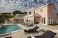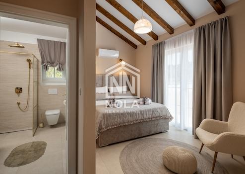 Über eine Innentreppe gelangt man in die obere Etage, wo sich drei weitere Schlafzimmer befinden. Jedes Zimmer verfügt über ein eigenes Badezimmer, sodass für sämtliche Haushaltsmitglieder und Gäste umfassender Komfort gewährleistet ist. Das größte Schlafzimmer auf dieser Etage hat Zugang zu einer großzügigen Terrasse, die einen atemberaubenden Blick auf das Meer bietet.