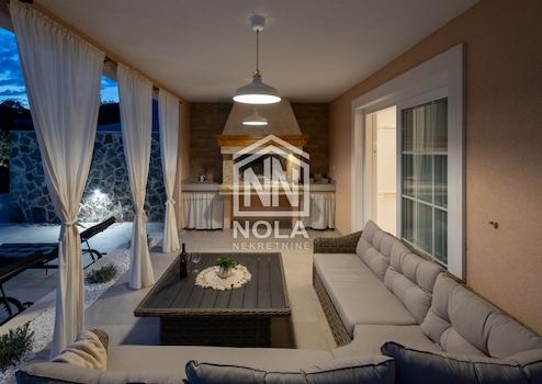 Diese luxuriöse Villa in einer abgeschiedenen Gegend in der Nähe von Rogoznica ist die perfekte Wahl für alle, die eine Kombination aus modernem Design, absoluter Privatsphäre und natürlicher Schönheit wünschen. Mit einer Gesamtfläche von 225 Quadratmetern auf einem großzügigen Grundstück von 920 Quadratmetern bietet dieses Anwesen einen idealen Rahmen für ein entspanntes und komfortables Leben.