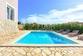 Das Innere bietet eine großzügige und funktionale Raumaufteilung mit vier Schlafzimmern und einem Wohnzimmer, während die große Terrasse zusätzlich ein Gefühl von Raum und Komfort vermittelt. Die Villa ist klimatisiert, mit PVC-Fenstern ausgestattet und für Zentral- und Solarheizung vorbereitet. Der Außenbereich verfügt über einen Grill, drei Parkplätze und einen schön angelegten Garten, der zum geselligen Beisammensein und Entspannen einlädt.