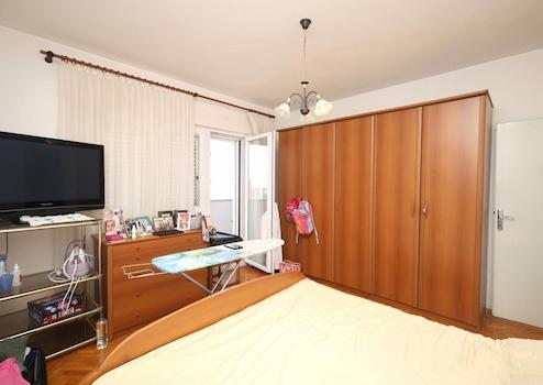 In ruhiger Lage befindet sich ein komfortabel möbliertes Vierzimmer-Apartment mit 85,25 m² Wohnfläche und einer Terrasse, das das gesamte 1. Obergeschoss des Hauses einnimmt. Das Apartment verfügt über einen separaten Eingang mit einer Außentreppe, die in das 1. Obergeschoss führt, und besteht aus einem Flur, einer Küche mit Essbereich und Wohnzimmer, einem Badezimmer sowie drei Schlafzimmern, von denen zwei Zugang zu einer gemeinsamen Terrasse mit Meerblick haben.