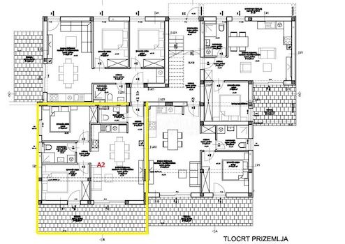 Die Wohneinheit „A2“ befindet sich im Erdgeschoss des Gebäudes und hat eine Nutzfläche von 96,76 m². Die Wohnung besteht aus einem Eingangsbereich, einem Badezimmer, WC, zwei Schlafzimmern, einer Küche mit Esszimmer und einem Wohnzimmer mit Zugang zu einer überdachten Terrasse. Zur Wohnung gehört ein Außenstellplatz. Das Gebäude liegt nur 800 m vom Strand und 900 m vom Stadtzentrum und allen wichtigen Annehmlichkeiten entfernt.
