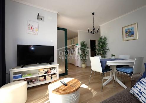 Kleines freistehendes Familienhaus auf Vir, direkt am Meer. Das Haus wurde 1980 erbaut, hat zwei Stockwerke, Erdgeschoss + 1. Stock, befindet sich auf einem Grundstück von 208,00 m2 und rund um das Haus gibt es einen Hof, der Parkmöglichkeiten für zwei bis drei Autos bietet. Das Haus besteht aus zwei Wohnungen mit jeweils 65 m2 Fläche, die durch einen separaten Eingang von außen völlig getrennt sind, da sich eine im Erdgeschoss und die andere im ersten Stock befindet, zusammen haben sie eine Fläche von 130 m2 haben. Das Erdgeschoss des Hauses besteht aus einer Loggia, einem Wohnzimmer mit Küche, einem Flur, zwei Schlafzimmern, einem Badezimmer und zwei Abstellräumen. Der erste Stock besteht aus einer nicht überdachten Terrasse, von der aus Sie die Wohnung betreten, einem Wohnzimmer und einer Küche, einem Badezimmer, zwei Schlafzimmern und einer Loggia. Das Haus wurde 2022 komplett renoviert, ist mit kompletter Ausstattung und Möblierung ausgestattet, hat ein schönes Design, ist mit einer Klimaanlage ausgestattet und bereit zum Wohnen und Genießen. Die Entfernung zum Strand beträgt 40 m, zum nächsten Markt 150 m und zum Stadtzentrum selbst 1000 m.