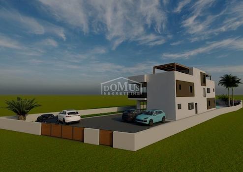 Vodice, Neubau, attraktive Lage, komfortable Zwei-Zimmer-Wohnung im 1. Stock. Die Wohnung S3 befindet sich in einem kleinen Wohngebäude mit insgesamt 4 Wohnungen, verfügt über ein modernes Design und einen funktionalen Grundriss mit insgesamt 99,42 m² Nutzfläche und Meerblick. Die Wohnung besteht aus einer geräumigen Küche mit Ess- und Wohnbereich, Flur, zwei Schlafzimmern, von denen eines ein eigenes Bad hat, sowie einem zusätzlichen separaten Bad, Abstellraum, überdachter Terrasse von 9,75 m² und einer Dachterrasse von 85,40 m² mit Stromanschluss und Wasseranschlüssen für eine Sommerküche und Jacuzzi. Sie ist mit hochwertigen Materialien ausgestattet: moderne Keramik und Sanitäreinrichtungen, Fußbodenheizung in der gesamten Wohnung, dreifach verglaste Fenster sowie elektrische Rollläden, Klimaanlagen im Wohnzimmer und in allen Schlafzimmern. Zur Wohnung gehören zwei Parkplätze. Die Wohnung liegt m vom Plava-Strand und 700 m vom Zentrum von Vodice entfernt.