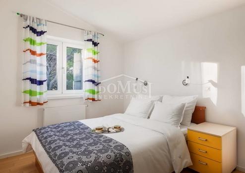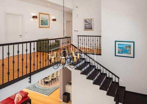 Hauptmaschinenraum, einen Poolmaschinenraum, eine Toilette, einen Lagerraum und einen Aufzug. Im Erdgeschoss befinden sich eine Küche mit Speisekammer, ein Esszimmer und ein Wohnzimmer mit Kamin, das zu einer überdachten Sommerküche mit Grill führt, ein Außenpool von 54,06 m2 mit Dusche und Liegewiese, und außerdem gibt es einen Wellnessbereich mit Innenpool, Whirlpool, Sauna und Dusche, Massageraum, Fitnessraum, Badezimmer, Waschküche und Abstellraum, Toilette, Aufzug und Garage für 3 Fahrzeuge. Im ersten Stock der Villa befindet sich ein großes Schlafzimmer mit Balkon und eigenem Bad, Whirlpool und separater Toilette sowie einem geräumigen Kleiderschrank. Neben dem Hauptschlafzimmer gibt es drei weitere Schlafzimmer, jedes mit eigenem Bad. Im zweiten Stock gibt es ein voll ausgestattetes Gästeapartment mit zwei Schlafzimmern und Meerblick und direkt daneben ein Apartment für die Gastgeberin. Die Villa ist mit Luxusausstattung ausgestattet, DAIKIN Heiz- und Kühlsystem über Solarkollektoren, Alarmanlage und Videoüberwachung, eingebauter Safe. Die Grundstücksfläche beträgt m2, es verfügt über einen komplett eingezäunten Hof mit Parkplatz für 6 Fahrzeuge, einen Teil eines Basketballplatzes mit Korb und einen wunderschön angelegten Garten.