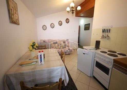 Vodice, in ruhiger Lage befindet sich ein Einfamilienhaus auf drei Etagen mit einer Gesamtnutzfläche von 301 m2. Das Haus verfügt über 4 Wohneinheiten und eine Garage. Im Erdgeschoss befinden sich ein Eingangsbereich, eine Küche mit Essbereich, ein Wohnzimmer, ein Badezimmer mit WC, ein Gäste-WC und ein großes Zimmer. Der erste Stock besteht aus drei Schlafzimmern mit Zugang zur Terrasse, einer Loggia und einem Badezimmer mit Toilette. Im zweiten Stock befinden sich zwei Apartments mit einem Schlafzimmer und einer geräumigen Terrasse. Das Haus verfügt über einen Steingrill, einen angelegten Garten und wird möbliert verkauft. Das Haus kann für touristische Zwecke kategorisiert werden. Die Entfernung zum Meer/Strand beträgt 700 m und zum Stadtzentrum 1200 m.