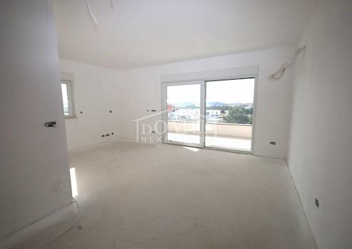 Neu erbaut, in ruhiger Lage, befindet sich eine komfortable Zweizimmerwohnung mit Dachterrasse und Meerblick sowie Parkplatz. Die Wohnung ist Teil eines kleineren Wohnhauses mit insgesamt 4 Wohnungen. Es verfügt über ein modernes Design und eine funktionale Raumaufteilung mit insgesamt 99,57 m2 Nutzfläche und besteht aus zwei Schlafzimmern, einem Badezimmer, einem Flur und einer geräumigen Küche mit Essbereich und Wohnzimmer als Ganzes, die auf eine überdachte Terrasse von 12,50 m2 führt. Eine Innentreppe führt in den 2. Stock, wo sich eine 61,10 m² große Dachterrasse und eine Sommerküche mit Toilette befinden. Die Wohnung ist mit Klimaanlage (Schlafzimmer und Wohnzimmer), Fußbodenheizung mit Warmwasser in der gesamten Wohnung, einem „Valiant“-Elektroherd, PVC-Fenstern mit Moskitonetzen, einer Sicherheitseingangstür sowie hochwertiger Keramik und Sanitärkeramik ausgestattet. Zur Wohnung gehört ein 12,50m2 großer Stellplatz. Die Wohnung liegt 2000 m vom Strand und 1600 m vom Zentrum entfernt.