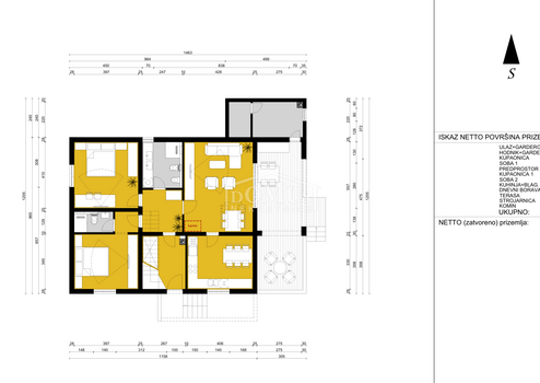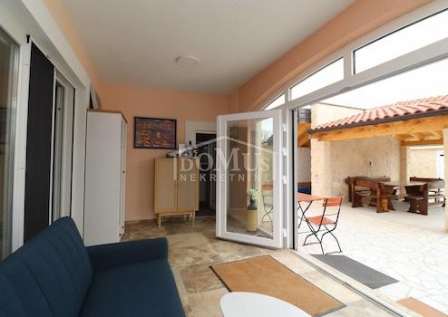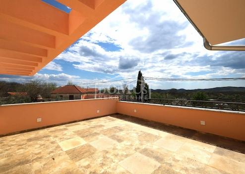 Ein schönes Haus mit Swimmingpool auf einem 927 m² großen Grundstück in ruhiger Lage. Das Haus erstreckt sich über zwei Etagen: Erdgeschoss + 1. Obergeschoss mit insgesamt 216,60 m2 Nutzfläche. Im Erdgeschoss befindet sich eine Wohnung mit 119,84 m2, bestehend aus einer Küche mit Esszimmer, einem Wohnzimmer mit Zugang zu einer überdachten verglasten Terrasse, zwei Schlafzimmern, eines davon mit eigenem Bad, und einem separaten Badezimmer. Über eine Innentreppe gelangt man in den ersten Stock, wo sich eine zweite Wohnung mit insgesamt 96,76 m2 Nutzfläche befindet, bestehend aus einer Innentreppe, einer Eingangshalle, zwei Schlafzimmern, zwei Bädern, einer Küche mit Esszimmer und einem gemütlichen Wohnzimmer mit Zugang zu einer großen, nicht überdachten Terrasse. Der Hof ist eingezäunt, das Grundstück behindertengerecht eingerichtet und mit einer Videoüberwachung ausgestattet. Zu diesem schönen Anwesen gehören außerdem ein 10 x 4 m großer beheizter Swimmingpool, eine Liegewiese, ein Pavillon, hinter dem sich ein Weinkeller befindet, und neben dem Pavillon gibt es einen Außenkamin, einen Maschinenraum und einen Abstellraum. Der Garten ist wunderschön mit mediterranen Pflanzen dekoriert, während das Innere modern gestaltet ist. Hinter dem Haus befinden sich ein Gartenhaus und überdachte Parkplätze. Die Entfernung zum Strand in Pirovac beträgt 14 km.