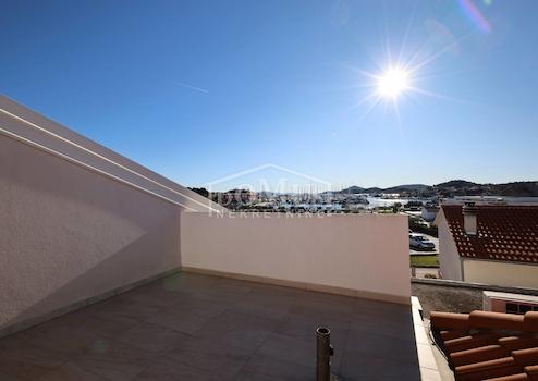 Gesamtnutzfläche von 400,52 m². Das Haus war ursprünglich aus Stein, wurde vor 1968 erbaut und 1986 teilweise renoviert. Es ist voll möbliert und sofort bezugsfertig. Es verfügt über neue Holzarbeiten und eine teilweise neue Fassade. Das Erdgeschoss des Hauses verfügt über einen kleineren Geschäftsraum von 14,82 m², der über einen separaten Eingang verfügt und aus einem Raum besteht. Die Taverne mit einer Fläche von 57,70 m² kann teilweise in eine Garage umgebaut werden, der Lagerraum verfügt über eine Fläche von 30,34 m². Im Erdgeschoss befindet sich eine neu renovierte Wohnung von 57,70 m² (49,85 m2), bestehend aus Flur, Küche mit Esszimmer, Bad und Wohnzimmer. Es gibt zwei Wohnungen im 1. OG und im Dachgeschoss, d.h. zwei zweistöckige Wohneinheiten, Wohnung S1: Wohnfläche 97,11 m², besteht aus Terrasse, Veranda, Küche mit Esszimmer und Wohnzimmer, Badezimmer, einem Schlafzimmer und zwei kleineren Schlafzimmern im Dachgeschoss. Wohnung Nr. 2: Mit einer Fläche von 147,64 m² besteht es aus einem geräumigen Eingangsbereich, Badezimmer, Wohnzimmer mit Küche und Zugang zur Terrasse, Schlafzimmer und im Dachgeschoss aus drei Schlafzimmern, Badezimmer und Terrasse. Beide Apartments verfügen über geräumige Terrassen mit Blick auf das Meer und die Stadt Tribunj. Das Haus ist mit dem Auto erreichbar. Zum Haus gehört kein Garten, es besteht jedoch die Möglichkeit, vier Fahrzeuge auf dem öffentlichen Gelände zu parken. Es liegt 300 m vom Strand Zamalin entfernt.