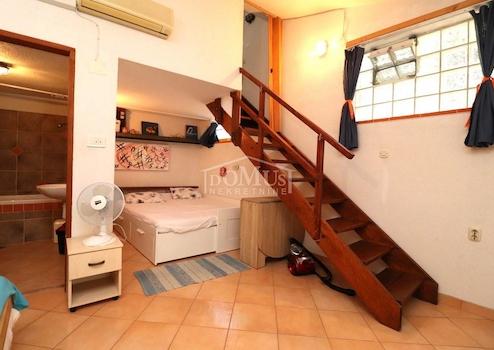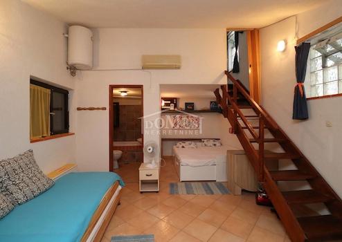 Murter – Altes Dorf, einstöckiges Haus mit Keller und Galerie, Gesamtnutzfläche 83,14m2 auf einem Grundstück von 146m2. Im Erdgeschoss befinden sich eine Küche mit Esszimmer, ein Wohnzimmer und ein Badezimmer sowie eine Innentreppe zur Galerie. Vor dem Haus befindet sich ein Innenhofbereich mit Garten, es gibt Außentreppen, die zur Dachterrasse und einer Außendusche führen, und der Raum unter der Treppe dient als Abstellraum. Das Haus verfügt über einen Keller, in dem sich eine Taverne befindet, und im Hof vor der Taverne gibt es eine Sommerküche, eine weitere Außendusche und Toilette sowie einen Abstellraum. Das Haus verfügt über keinen Parkplatz, die Zufahrt zum Haus ist mit einem Kleinfahrzeug möglich, Parken ist in 100 m Entfernung auf dem öffentlichen Parkplatz möglich. Entfernung zum Strand von Slanica ist m und zum Zentrum von Murter 800m.