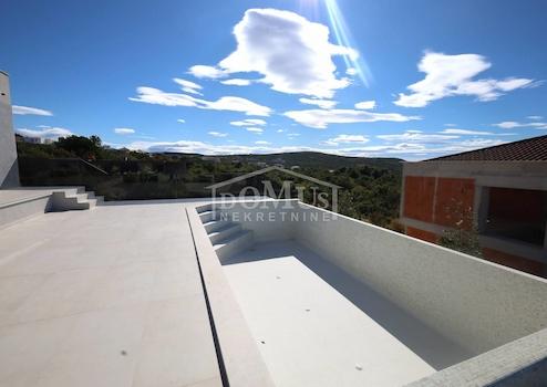 Villa in Primošten mit spektakulärem Panoramablick auf das Meer und die Stadt Primošten. Sie befindet sich auf einem 600 m² großen Grundstück, umgeben von Natur und abseits der städtischen Hektik. Entworfen mit moderner Architektur, klaren Linien, großzügigen Terrassen und sorgfältig ausgewählten Materialien.