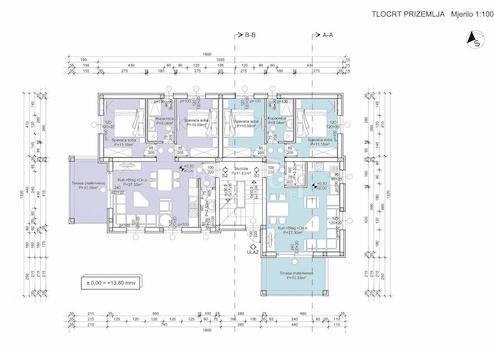 Rogoznica, Ortskern, 3. Reihe zum Meer, neues Projekt, neu gebaute Wohnungen mit Meerblick. Das Wohngebäude verfügt über vier Etagen, mit insgesamt 7 Wohneinheiten. Zu jeder Wohnung gehört ein Parkplatz und ein Abstellraum im Keller des Gebäudes, die Abstellräume sind 5 – 9 m2 groß. Das Gebäude ist nur 70 m vom Meer entfernt. Der Preis der Wohnungen ist inklusive Mehrwertsteuer angegeben. Der Käufer zahlt beim Kauf einer Immobilie keine Grunderwerbssteuer. WOHNUNG S3, im hohen Erdgeschoss gelegen, hat eine Gesamtnutzfläche von 66,42 m2, ist nach Südosten ausgerichtet, besteht aus einem Wohnzimmer, Küche und Esszimmer, zwei Schlafzimmern, Bad, Toilette und einer überdachten Terrasse von 10,33 m2. Die Wohnung verfügt über einen Parkplatz und einen Abstellraum.