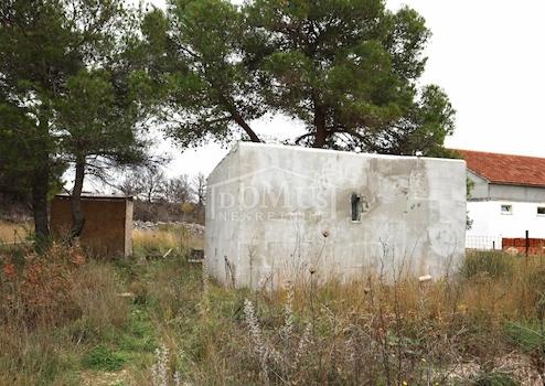 Zaton in der Nähe von Šibenik, entlang der Benkovac-Straße, sowie entlang einer asphaltierten Zufahrtsstraße, befindet sich ein landwirtschaftliches Grundstück mit einer Fläche von m2. Das Grundstück hat eine regelmäßige Form, ist entlang der Zufahrtsstraße 30 m breit und 90 m lang, flach und von einer Trockenmauer umgeben. Auf dem Grundstück befindet sich ein vorgefertigtes Gebäude von 10 m² und eine Baugrube. Entfernung vom Strand m und vom Zentrum von Zaton.