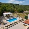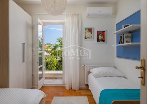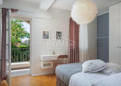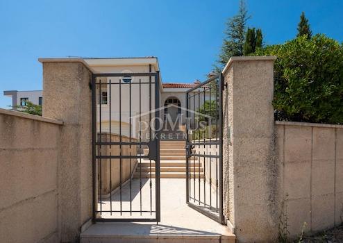 In einer ruhigen Umgebung, ideal, um die Ruhe abseits der Hektik des Alltags zu genießen, befindet sich eine Villa mit einem schönen Garten und einem Swimmingpool. Die Villa hat 258,05 m2 Nutzfläche und ist auf einem Grundstück von m2 gebaut, der Hof des Hauses ist in mehrere Ebenen unterteilt, auf der untersten Ebene gibt es einen Parkplatz für mehrere Fahrzeuge, einen Blumengarten und Grünbereich befindet sich auf der mittleren Ebene, während die Liegewiese, Swimmingpool, Terrasse und Außengrill mit Miniküche auf der obersten Ebene mit Blick auf die Landschaft liegen. Im EG der Villa befindet sich ein Gesellschaftsrau, ein weiteres Wohnzimmer, ein Heizraum, eine Taverne, ein Badezimmer und eine Garage. Im 1. Stock gibt es eine große, geräumige Eingangshalle, Flur, von dem aus Sie in den Schlafbereich gelangen, wo sich drei Schlafzimmer und Badezimmer befinden, jedes Schlafzimmer hat Zugang zu einem Balkon/Terrasse, ein Schlafzimmer mit eigenem Bad, ein geräumiges Wohnzimmer, von dem aus Zugang zur Galerie, Esszimmer, Küche, Gäste-WC, Waschküche und Zugang zu einer großen überdachten Terrasse mit Sonnendeck, Grill und einem großen Swimmingpool besteht. Die Villa ist mit hochwertigen Materialien gebaut und ausgestattet, sie ist mit Zentralheizung, einem Solarpanel für Warmwasser, einem Pool mit Gegenstromanlage, Klimaanlage in jedem Zimmer ausgestattet. Sie ist m vom Meer/Strand und m vom Zentrum entfernt. Der Vorteil dieser Immobilie ist die Tatsache, dass der zukünftige Käufer zusätzlich zu der erwähnten Villa die Möglichkeit hat, ein zusätzliches Grundstück von 800 m2 gegen eine zusätzliche Gebühr zu erwerben.