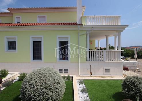 Eine schöne Villa auf einem Grundstück von m2, neu gebaut, befindet sich am Rande des Dorfes, was absolute Ruhe und Privatsphäre gewährleistet. Die Villa erstreckt sich über drei Etagen: Untergeschoss + Erdgeschoss + Obergeschoss mit insgesamt 329,71 m2 Nutzfläche. Im Untergeschoss befindet sich eine Wohnung S1 mit 65,63 m2, sowie ein separater Eingang zur Taverne mit einem Abstellraum von 25 m2. Ein separater Eingang zum Erdgeschoss, wo sich eine luxuriös eingerichtete Wohnung S2 mit insgesamt 143,18 m2 Wohnfläche + einer Terrasse von 25,86 m2 befindet, die aus einer Innentreppe, einer Eingangshalle, 3 Schlafzimmern besteht und jedes Schlafzimmer sein eigenes hat Badezimmer, Küche und geräumiges Esszimmer und gemütliches Wohnzimmer mit Zugang zu einer großen überdachten Terrasse mit Blick auf das Meer, das Dorf und den schönen Garten. Im Erdgeschoss gibt es auch eine Doppelgarage von 37,50 m2 (für zwei Autos), die einen separaten Eingang zur Villa hat, sowie ein weiteres Zimmer und eine Toilette. Die Innentreppe führt in den ersten Stock, wo sich eine Einzimmerwohnung S3 mit insgesamt 30,09 m2 Wohnfläche + einer Terrasse von 17,85 m2 mit Meerblick befindet. Ein integraler Bestandteil dieses schönen Anwesens ist auch ein 4 x 8 m großer Swimmingpool. Der Hof ist wunderschön dekoriert und mit mediterranen Pflanzen angereichert, während das Interieur ein modernes Design hat. Entfernung zum Strand 600 m und zum Zentrum 400 m.