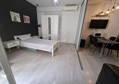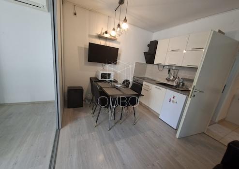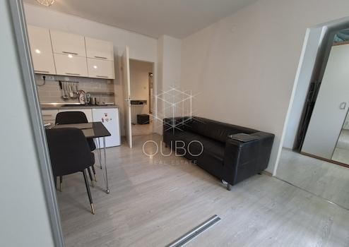 Die Wohnung besteht aus einem Eingangsbereich, Badezimmer, Küche mit Ess- und Wohnzimmer sowie einem Schlafzimmer. Eine Schiebetür ermöglicht bei Bedarf die Trennung der Küche vom Wohnbereich, während die geschlossene Loggia ein idealer Ort für den Morgenkaffee oder zum Entspannen mit einem Buch ist.