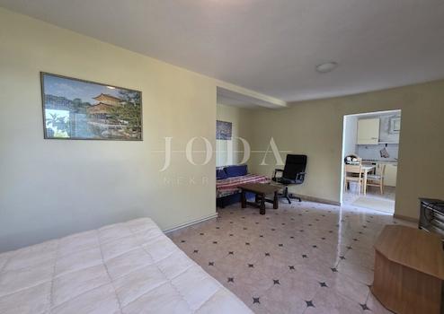 Im Erdgeschoss befinden sich zwei weitere Wohnungen – eine Zweizimmerwohnung mit insgesamt 50 m² und ein Studioapartment mit 35 m², die durch eine gemeinsame überdachte Terrasse verbunden sind. Darüber hinaus gibt es auf dem Grundstück eine weitere überdachte Terrasse mit Grill, perfekt für gesellige Runden im Freien, sowie einen Heizraum.