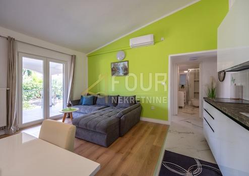 Auf dem 740 m² großen Grundstück gibt es einen neu erbauten Pool mit 32 m², einen Grillplatz sowie reichhaltige mediterrane Vegetation mit Olivenbäumen, Mandarinen, Gemüsegarten und weiteren Obstbäumen.