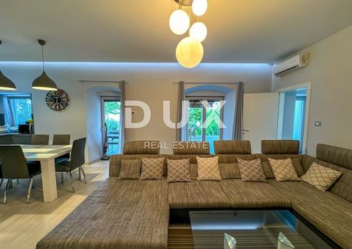Nur in unserem Angebot heben wir eine hochwertige Erdgeschosswohnung mit drei Schlafzimmern hervor, zweite Reihe zum Meer in Ičići. Diese schöne Wohnung liegt im Erdgeschoss eines Privathauses, umgeben von einer Grünfläche ohne Nachbarn, nur wenige Meter vom Meer entfernt.