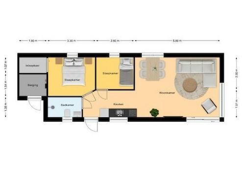 Dieses einzigartige Ibiza-Stil Chalet an der Maireweg 108 im Ferienpark Schouwen Duin bietet modernen Luxus und Nachhaltigkeit in Burgh-Haamstede, Zeeland. Erbaut 2021 ist dieses 4-Personen-Chalet vollständig gaslos und isoliert mit 53m² Wohnfläche auf einem großzügigen Grundstück von 336m² Erbbaurecht. Das Chalet strahlt Ibiza-Atmosphäre mit natürlichen Materialien, Estrichboden und warmen Farbtönen aus. Das helle Wohnzimmer mit serener Atmosphäre verfügt über Klimaanlage, Fußbodenheizung und bodentiefe Schiebetür zur Terrasse. Alle Lichter in Wohnzimmer, Küche und großem Schlafzimmer sind dimmbar für perfekte Stimmung. Die offene Küche ist vollständig ausgestattet mit Kühlschrank, Gefrierschrank, Kombi-Ofen, Geschirrspüler und Induktionskochfeld. Zwei komfortable Schlafzimmer haben Verdunkelungsfenster, eines mit Durchgang zum begehbaren Kleiderschrank. Das stilvolle Badezimmer hat begehbare Dusche, schwebendes WC und Waschtischmöbel. Der schön angelegte Südgarten bietet mehrere Sitzplätze, robuste Gartenmöbel und Hängematte. Für €279.000 erhalten Sie eine bezugsfertige, wartungsarme Investition zu Fuß vom Natura2000 Gebiet.