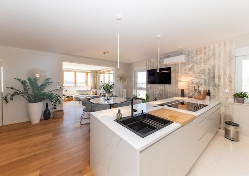 Zum Verkauf steht eine luxuriöse Wohnung in Vodice. Sie befindet sich im zweiten Stock eines kleinen Gebäudes mit insgesamt drei Wohnungen. Die Wohnung hat eine Wohnfläche von 90 m² und besteht aus Flur, Küche mit Ess- und Wohnzimmer, zwei Schlafzimmern, WC und zwei Bädern. Die funktionale Raumaufteilung vermittelt Komfort und Großzügigkeit, und die maßgefertigten Möbel garantieren Qualität und Langlebigkeit.
