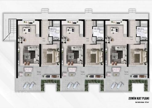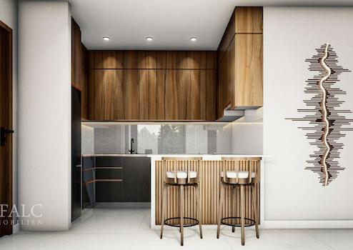 Für Ihr Wohlbefinden und Ihre Freizeitgestaltung bietet der Komplex große Gemeinschaftspools vor jedem Block, die Ihnen das Gefühl eines endlosen Urlaubs vermitteln. Darüber hinaus gibt es ein Café, einen Kinderspielplatz und eine schwebende Aussichtsterrasse über der Klippe. Die Wohnung selbst ist mit Holzpergolen, hochwertigen Einbauküchenschränken und Einbauschränken in den Schlafzimmern, abgehängten Decken mit Strahlern und erstklassigen Sanitäranlagen ausgestattet.