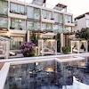 Das Projekt, das auf einem 12.700 m² großen Grundstück errichtet wurde und von Olivenbäumen umgeben ist. Ein besonderer Vorteil dieses Komplexes ist der atemberaubende Blick auf das Meer und die Berge, wobei die Entfernung zum Meer nur 350 Meter beträgt.