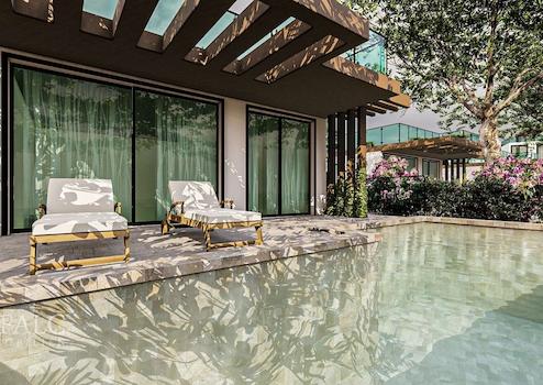 Große Gemeinschaftspools vor jedem Block, die ein unendliches Urlaubsgefühl vermitteln