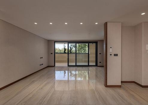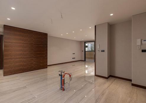 Die gesamte Wohnung ist mit großen Schiebesteinen dekoriert, die Böden sind mit hochwertiger Porzellankeramik belegt und die abgehängten Decken mit integrierter Beleuchtung sorgen für eine entspannte Atmosphäre. Die Eingangstür der Wohnung ist einbruchhemmend, gefertigt vom italienischen Hersteller Diera, ebenso die Zimmertür aus hochwertigem Walnussholz des gleichen Herstellers. Die Badezimmer sind mit hochwertigen Geräten und Sanitärartikeln in einer Kombination aus Holz und Keramik ausgestattet. Die Wohnung verfügt über Fußbodenheizung und -kühlung mit Mitsubishi-Klimaanlagen und Brüstungs-Innengeräten in jedem Raum.