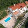 Haus von 850m2, auf zwei Etagen, mit vier Wohnungen und einer großen Garage / Werkstatt im Erdgeschoss, eingebautem Pool von 26 m2 und einem großen Garten. Vor dem Haus ist ein Parkplatz für mehrere Fahrzeuge, im Erdgeschoss und ein kleines Studio-Apartment zur Miete geeignet.