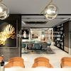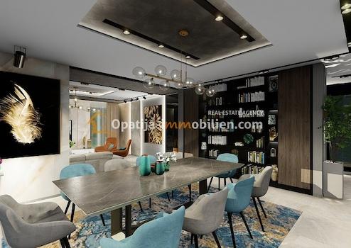 Das Erdgeschoss ist als Wohnzimmer mit Kamin, Esszimmer und offener Küche mit einem Überlaufpool von 43 m2 und einer Terrasse konzipiert, die die beiden Einheiten verbindet. Küchengeräte und andere Möbel sind von höchster Qualität.