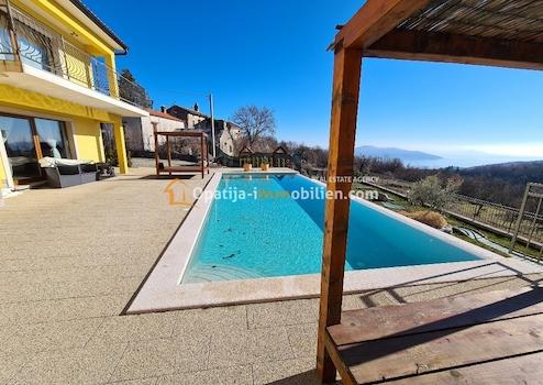 Die Villa befindet sich im Naturpark Učka mit einem wunderschönen atemberaubenden Meerblick, wo sie Ruhe und Entspannung in der Natur bietet. Im Erdgeschoss befindet sich ein helles Wohnzimmer sowie eine charmante Küche mit Essbereich. Ein paar Schritte entfernt befindet sich ein Wellnessbereich mit Sauna und Whirlpool. Alle Schlafzimmer sind klimatisiert, verfügen über einen Fernseher und befinden sich im ersten Stock. Die Villa hat auch einen Infinity-Pool von 40 m2, von dem aus Sie einen atemberaubenden Blick auf die Umgebung genießen können. Die Villa ist mit Tischtennis, Minigolf und einem Basketballplatz ausgestattet.