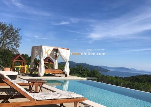 Die Villa befindet sich im Naturpark Učka mit einem wunderschönen atemberaubenden Meerblick, wo sie Ruhe und Entspannung in der Natur bietet. Im Erdgeschoss befindet sich ein helles Wohnzimmer sowie eine charmante Küche mit Essbereich. Ein paar Schritte entfernt befindet sich ein Wellnessbereich mit Sauna und Whirlpool. Alle Schlafzimmer sind klimatisiert, verfügen über einen Fernseher und befinden sich im ersten Stock. Die Villa hat auch einen Infinity-Pool von 40 m2, von dem aus Sie einen atemberaubenden Blick auf die Umgebung genießen können. Die Villa ist mit Tischtennis, Minigolf und einem Basketballplatz ausgestattet.