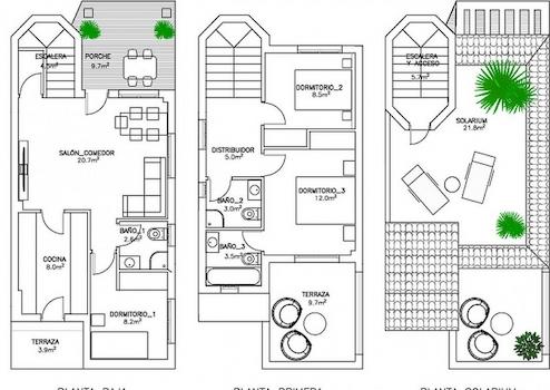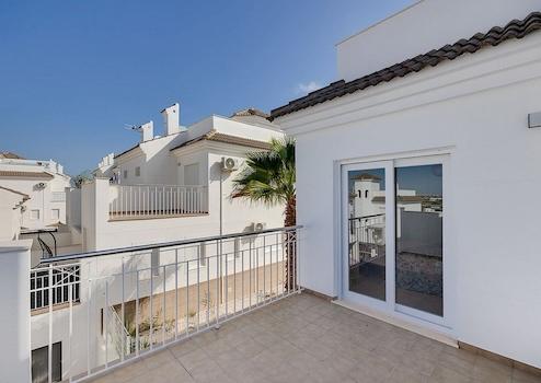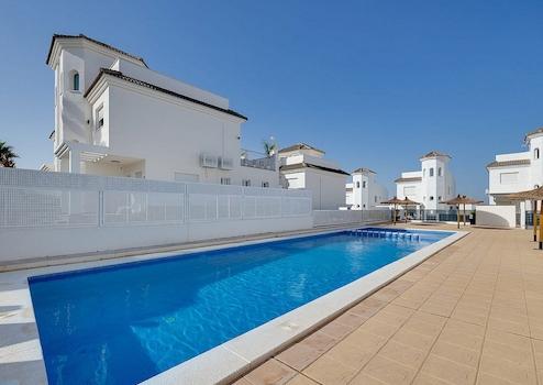 Die freistehenden Häuser und Doppelhaushälften bieten 2 oder 3 Schlafzimmer, 3 Badezimmer, Wohnzimmer und separater Küche, Terrassen im Erdgeschoss, eine Terrasse im OG und eine Dachterrasse. Jedes Haus hat ein eigenes Grundstück und es gibt einen großen Gemeinschaftspool in der Anlage.