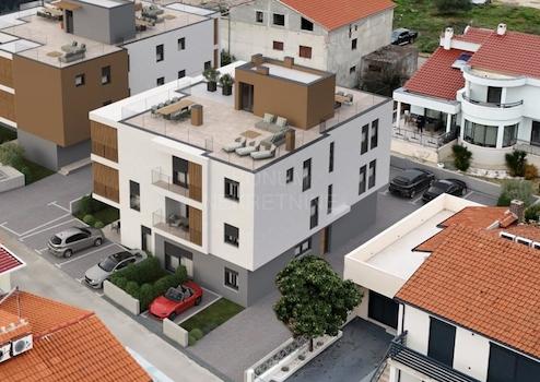Zum Verkauf steht eine Zwei-Zimmer-Wohnung im ersten Stock eines modernen Neubaus in Vodice. Die Gesamtnutzfläche beträgt 72,26 m² und besteht aus einem Flur, zwei Schlafzimmern, einem Badezimmer, einer Waschküche, einem Wohnzimmer mit angeschlossener Küche und Esszimmer sowie einer großzügigen Terrasse von 16,25 m². Zur Wohnung gehört ein Parkplatz.