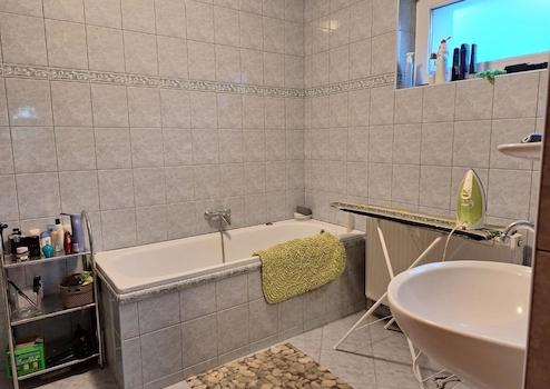 Erdgeschoss und Obergeschoss (je 90 m²): separate Wohnungen mit je 3 Zimmern, Wohnzimmer, Küche-Essbereich, Bad und WC